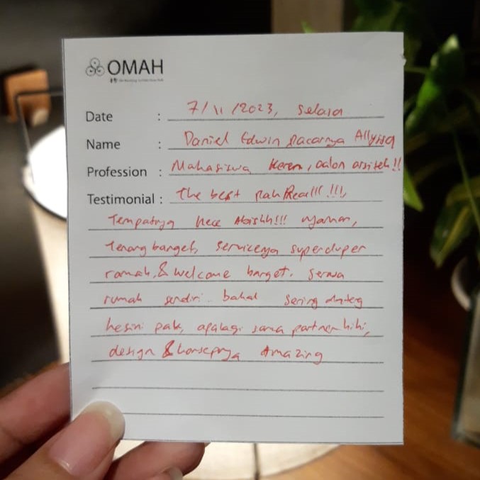 The best pak Real!! tempatnya kece abiss! Nyaman, tenang banget. Service-nya super duper ramah & welcome banget. Serasa rumah sendiri. Bakal sering dateng kesini pak, apalagi sama partner hihi, design & konsepnya amazing.