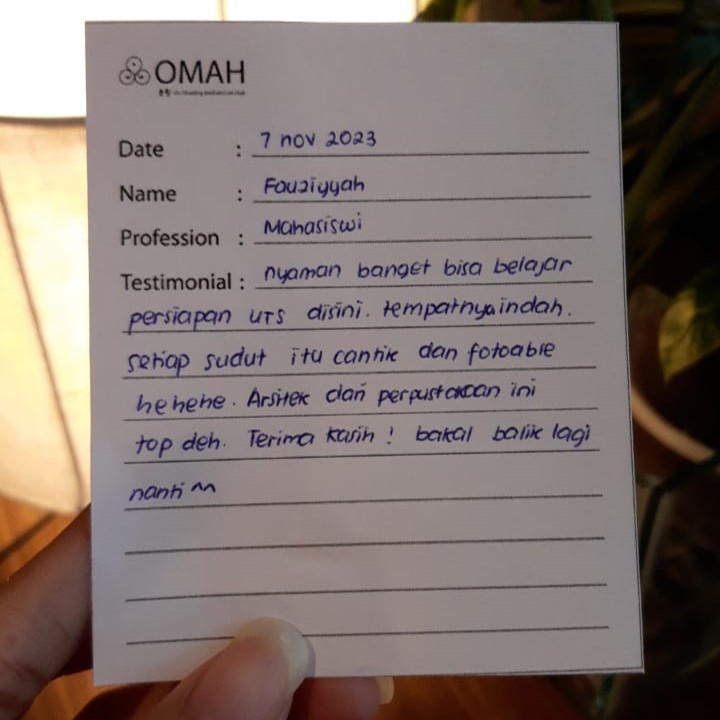Nyaman banget bisa belajar persiapan UTS disini. Tempatnya indah. Setiap sudut itu cantik dan fotoable hehehehe. Arsitek dari perpustakaan ini top deh. Terimakasih! bakal balik lagi nanti.