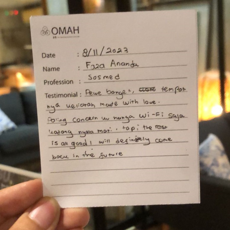 Pewe banget, tempatnya keliatan made with love. Paling concernku hanya Wi-Fi saja kadang nyala mati, tapi the rest is a good ! I will definitely come bace in the future.