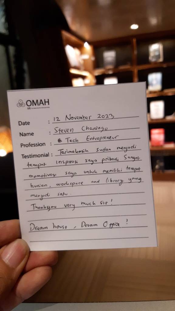 Terimakasih sudah menjadi tempat inspirasi saya pribadi. Sangat memotivasi saya untuk memiliki tempat hunian, workspace and library yang menjadi satu. Thankyou very much sir! Dream house, dream Office!