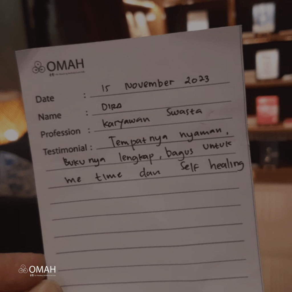 Tempatnya nyaman, bukunya lengkap, bagus untuk me time dan self healing.