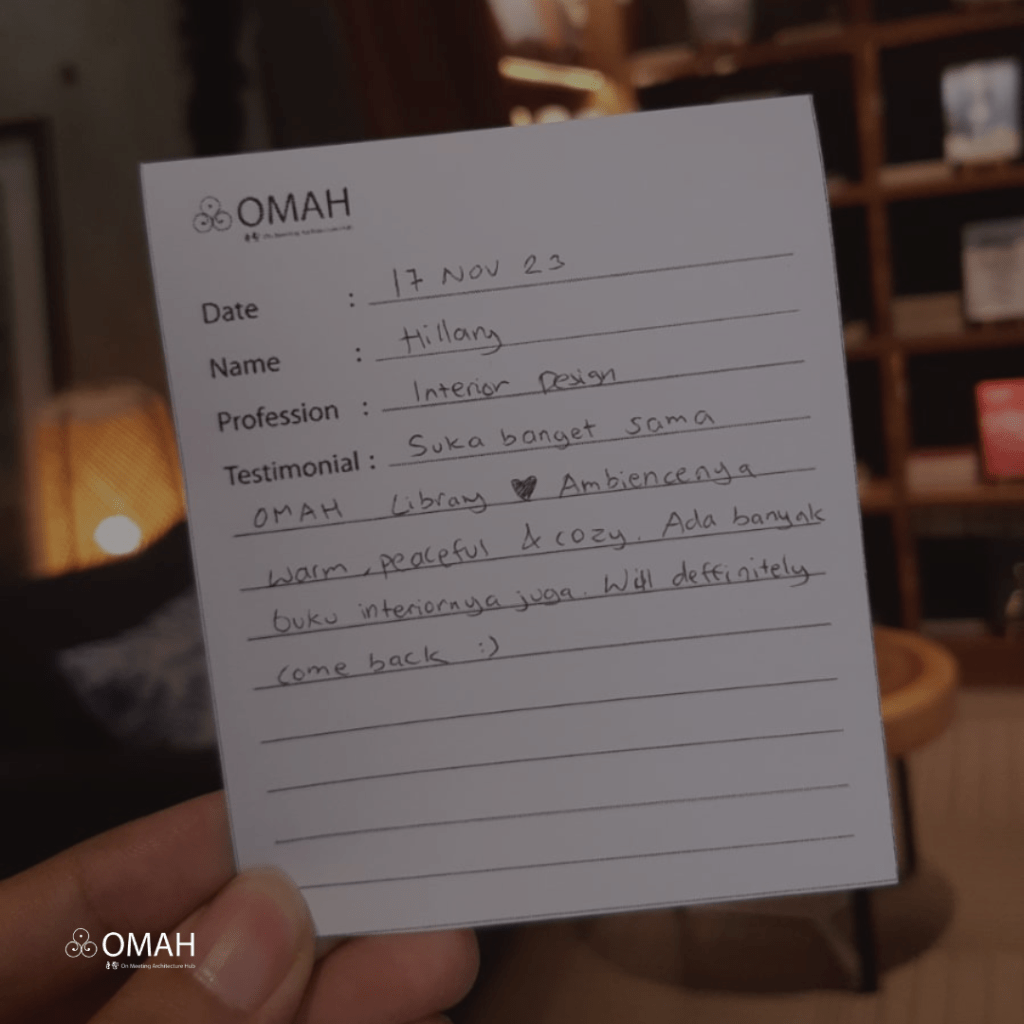 Suka banget sama OMAH Library. Ambiencenya warm, peaceful & cozy. Ada banyak buku interiornya juga. Will definitely comeback 🙂