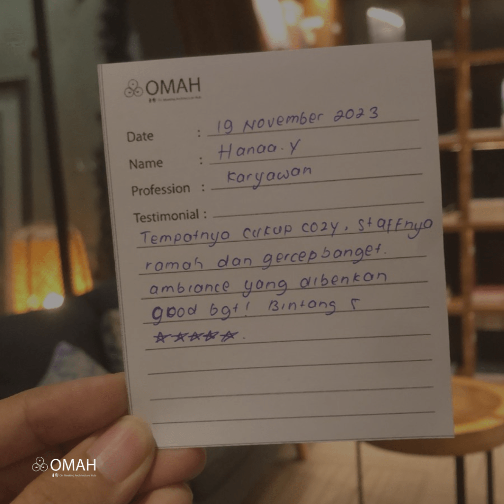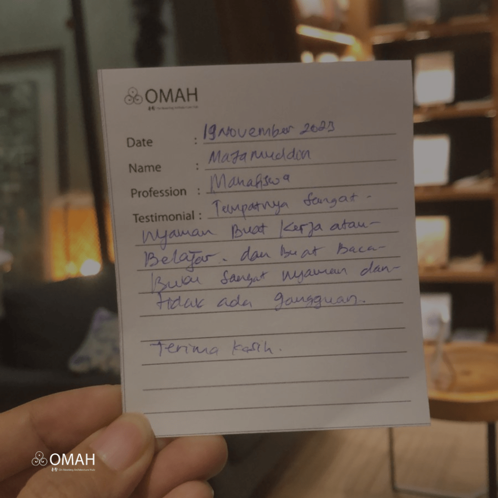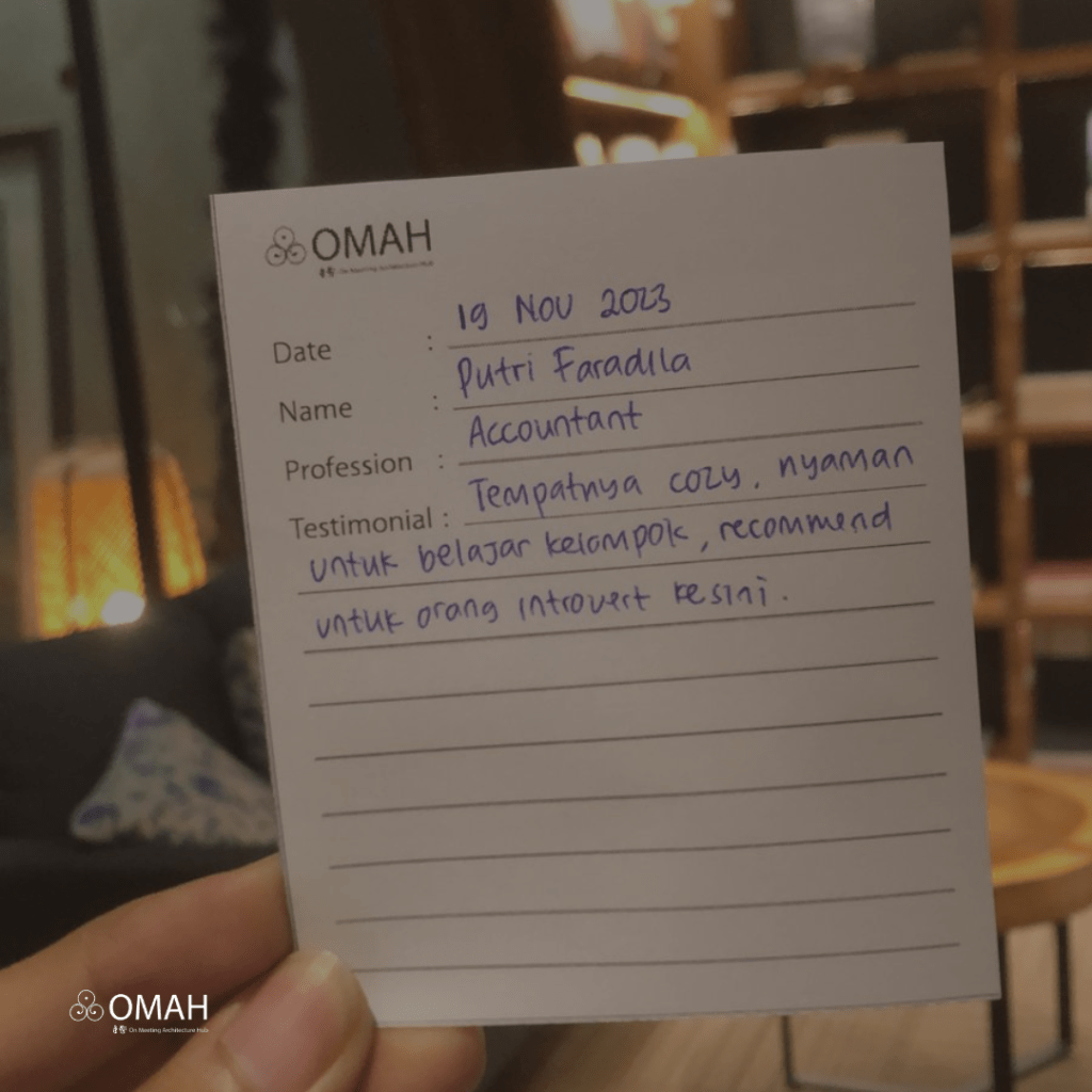 Tempatnya sangat nyaman buat kerja atau belajar. Dan buat baca buku sangat nyaman dan tidak ada gangguan. Terimakasih.