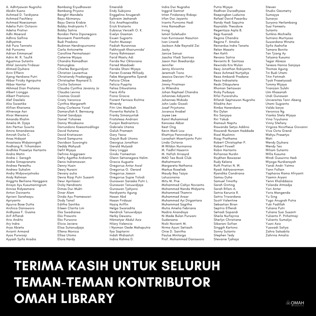 OMAH Library tetap akan terus maju dibalik seluruh keterbatasan kami. Tunggu beberapa program yang sedang kami susun dalam waktu dekat, supaya kita bisa menimkati bagaimana pergerakan positif dari insan-insan yang bergerak didalam ekosistem arsitektur Indonesia.