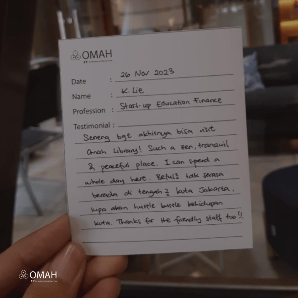 Seneng bgt akhirnya bisa visit Omah Library! such a zen, tranquil & peaceful place. I can spend a whole day here. Betul- betul tak serasa berada di tengah-tengah kota Jakarta. Lupa akan hustle bustle kehidupan kota. Thanks for the friendly staff too!!