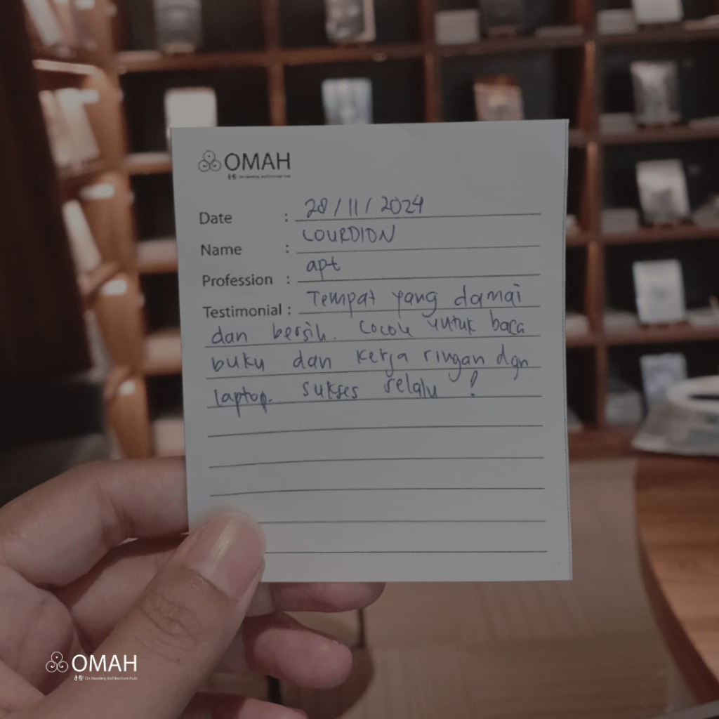 Tempat yang damai dan bersih. Cocok untuk baca buku dan kerja ringan dengan laptop. Sukses selalu 1