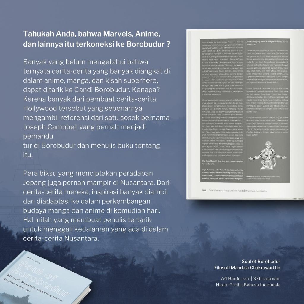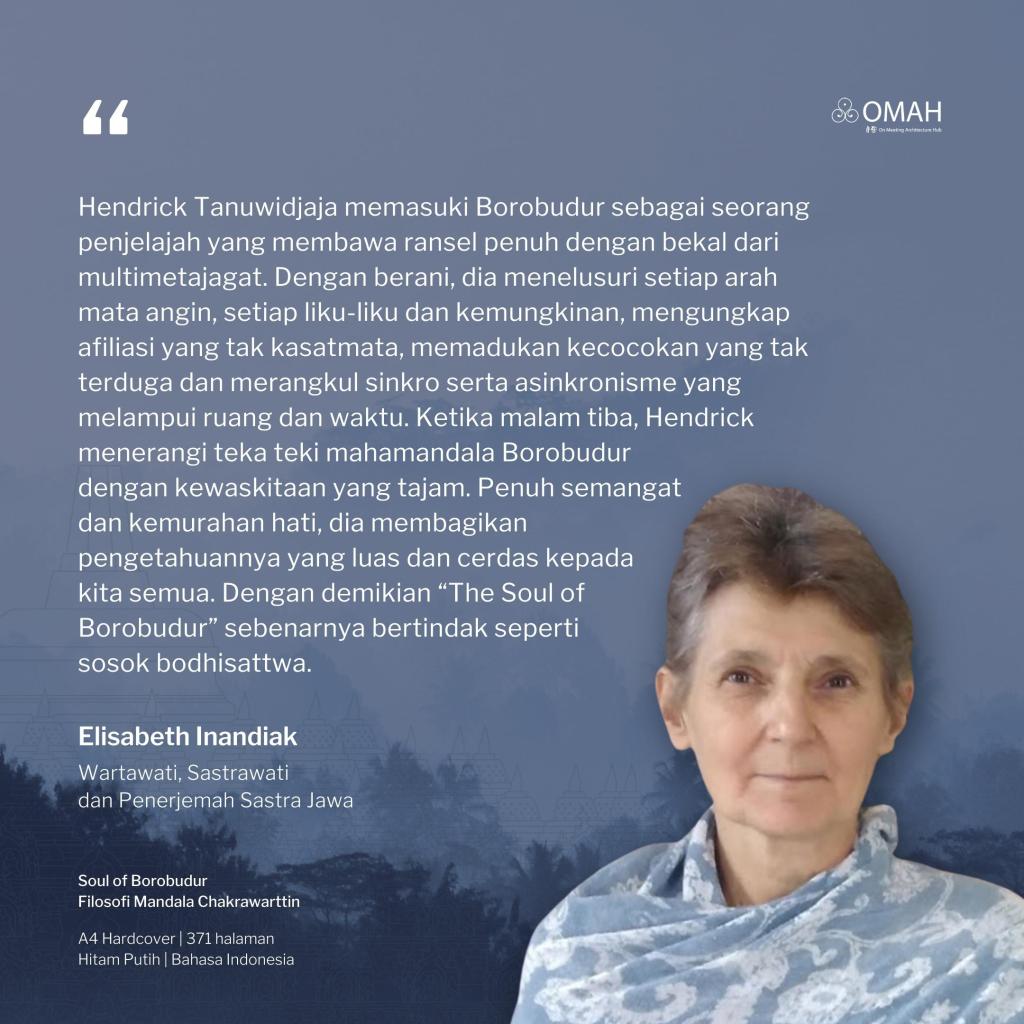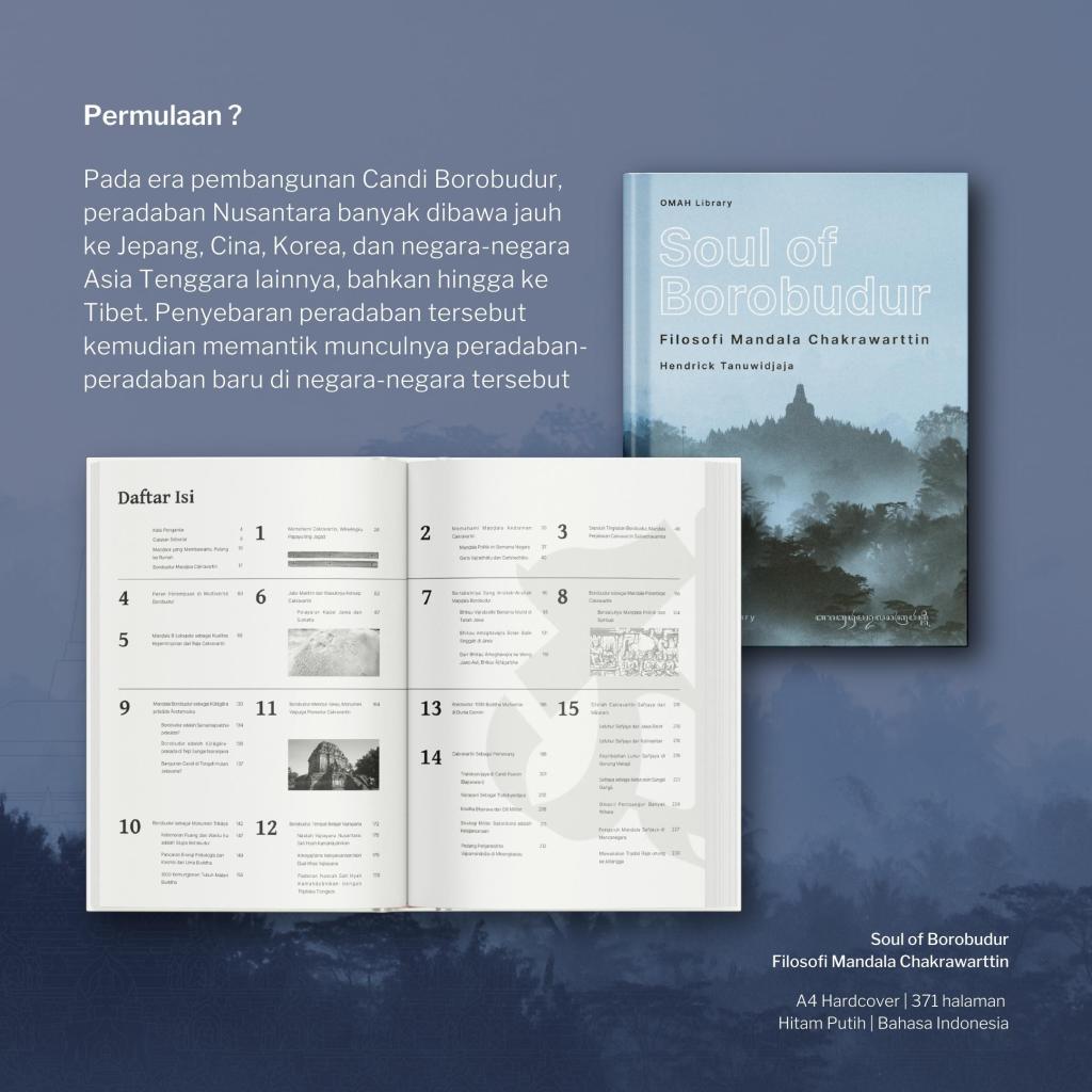 Kabar baik bagi teman-teman, OMAH Library menerbitkan buku mengenai “Soul of Borobudur, Filosofi Mandala Chakrawattin”, yang ditulis oleh Hendrick Tanuwidjaja, beliau seorang praktisi mindfulness. Kecintaannya terhadap mindfulness, sebelumnya beliau juga menulis buku “Mindful is Mind-Less, Seni Beristirahat dalam Badai”.