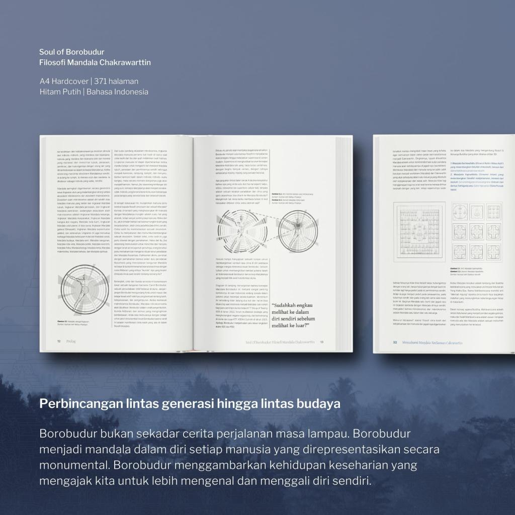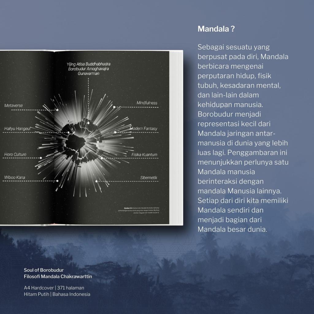 Buku ini terbagi dalam 23 bab yang dimulai dengan pemahaman mengenai Cakravartin, soul of Borobudur, hingga bagaimana memandang dunia melalui Mandala. Di dalam buku ini terdapat 87 foto, 32 diagram, & 69 Ilustrasi, dan juga terdapat tanggapan dari @eka_swadiansa @jo_adiyanto dan @akunnya_yolanda yang menambah memberikan kekayaan & penghayatan buku ini, harapannya pembaca dapat terinspirasi untuk lebih mencintai Indonesia & turut berkontribusi membawa Indonesia maju ke depan dengan menengok kisah dari masa lalu.