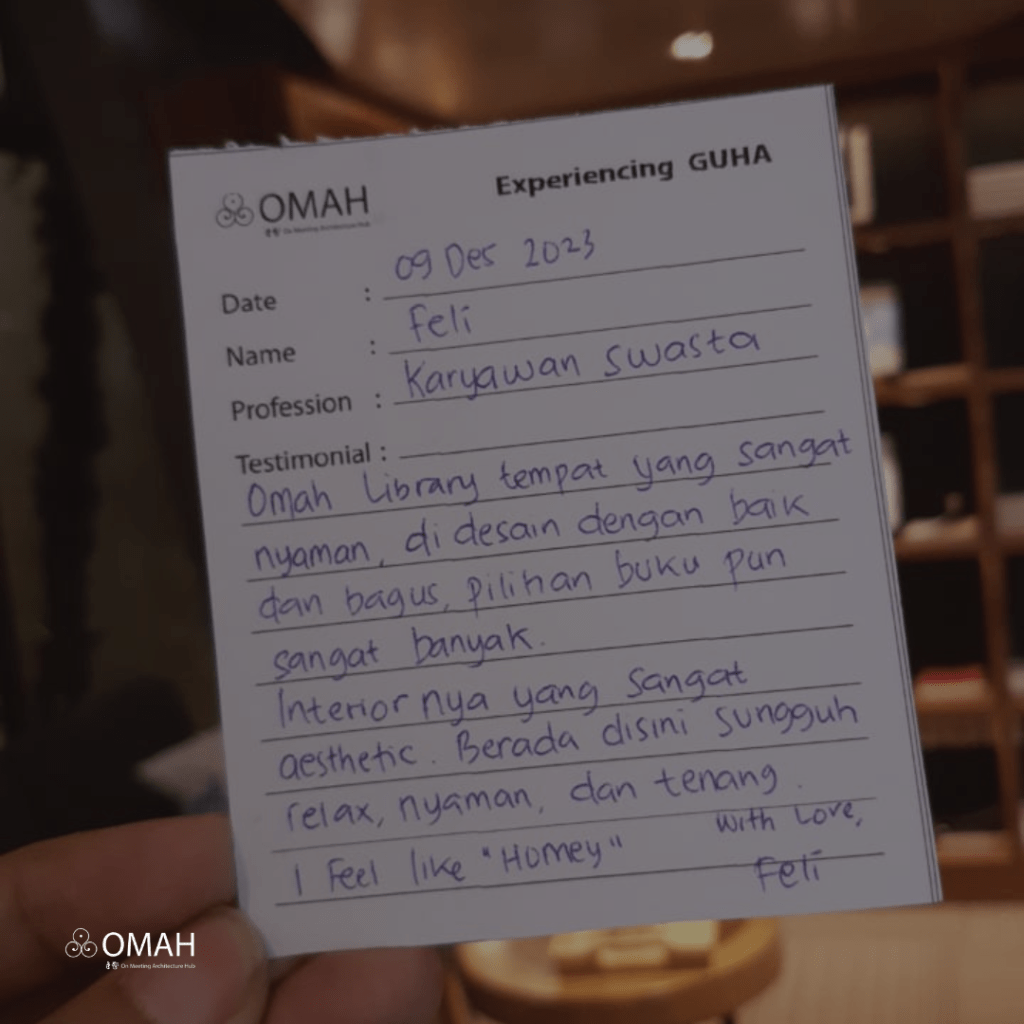 Omah Library tempat yang sangat nyaman, didesain dengan baik dan bagus, pilihan buku pun sangat banyak. Interiornya yang sangat aesthetic. Berada disini sungguh relax, nyaman, dan tenang. I feel like “homey”.