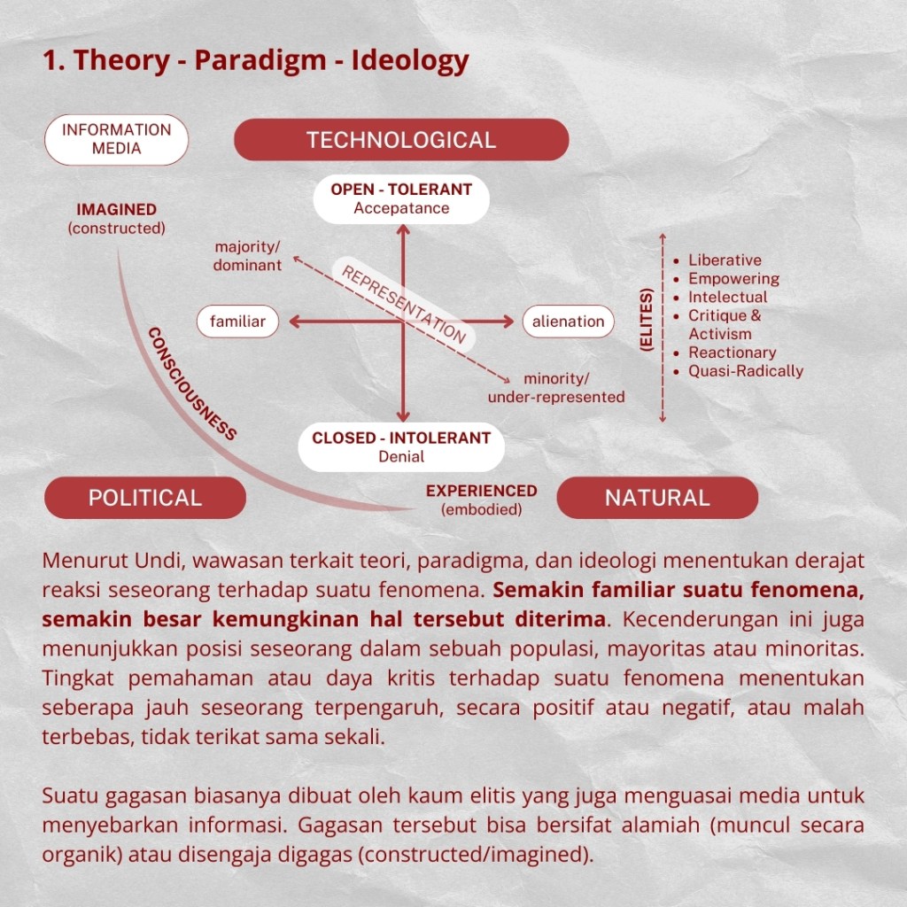 Undi Gunawan membawa perspektif uniknya terhadap “Teori,” dengan melihatnya bukan sebagai kata dalam buku, melainkan sebagai kegiatan pandang yang menjadi eksplorasi luar biasa dari sudut pandangnya. Peta 12 tema kelas “Fight for Architecture” yang dibukanya menjadi kerangka kerja ekosistem dan pemikiran, terkait erat dengan daya alamiah, politik, dan teknologi. Sebagai seorang penjelajah, Undi merinci tantangan dan peluang yang dihadapi, membentuk narasi yang menggugah dan memberikan keberanian untuk mengambil sikap.