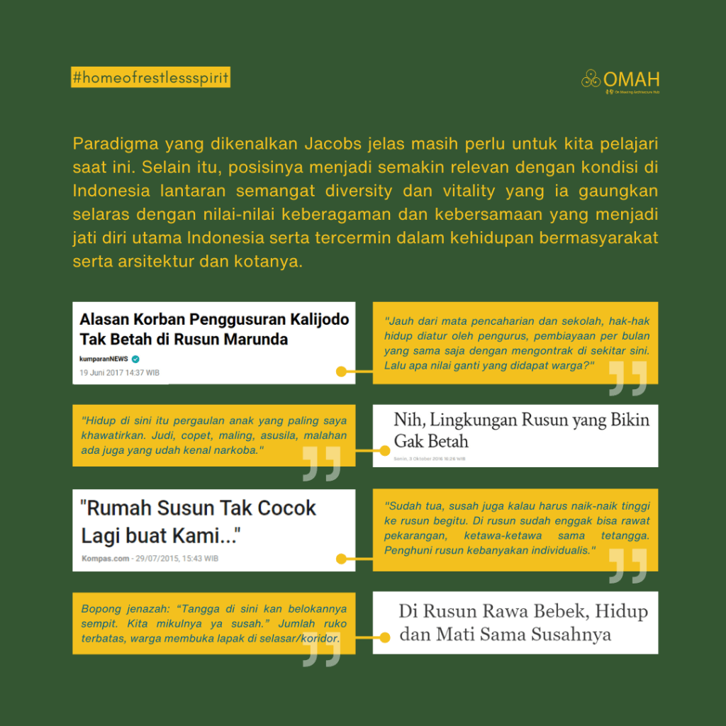 Lalu, setelah 60 tahun berlalu, apakah buku The Death and Life of Great American Cities masih relevan? Bagaimana relevansi konteks di AS saat itu dengan kondisi di Indonesia saat ini?