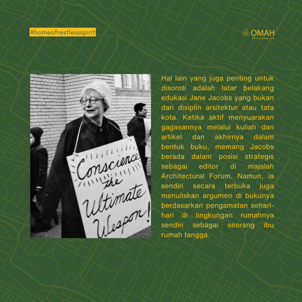 Terakhir, apa yang bisa kita pelajari dari sosok Jane Jacobs yang sebenarnya tidak memiliki latar belakang pendidikan di bidang arsitektur maupun desain?