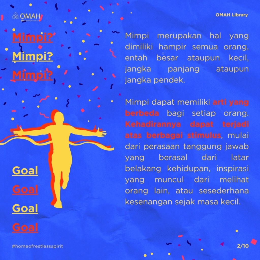 Mimpi dimiliki hampir semua orang dengan makna yang berbeda-beda. Kehadirannya dapat terjadi atas berbagai stimulus, mulai dari perasaan tanggung jawab yang berasal dari latar belakang kehidupan, inspirasi yang muncul dari melihat orang lain, atau sesederhana kesenangan sejak masa kecil.