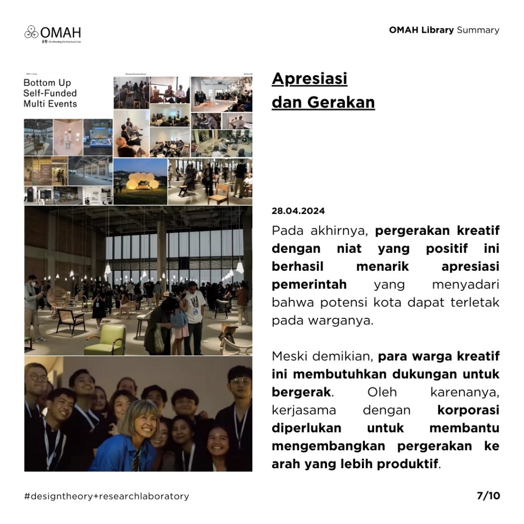 Pada akhirnya, pergerakan kreatif dengan niat yang positif ini berhasil menarik apresiasi pemerintah yang menyadari bahwa potensi kota dapat terletak pada warganya.