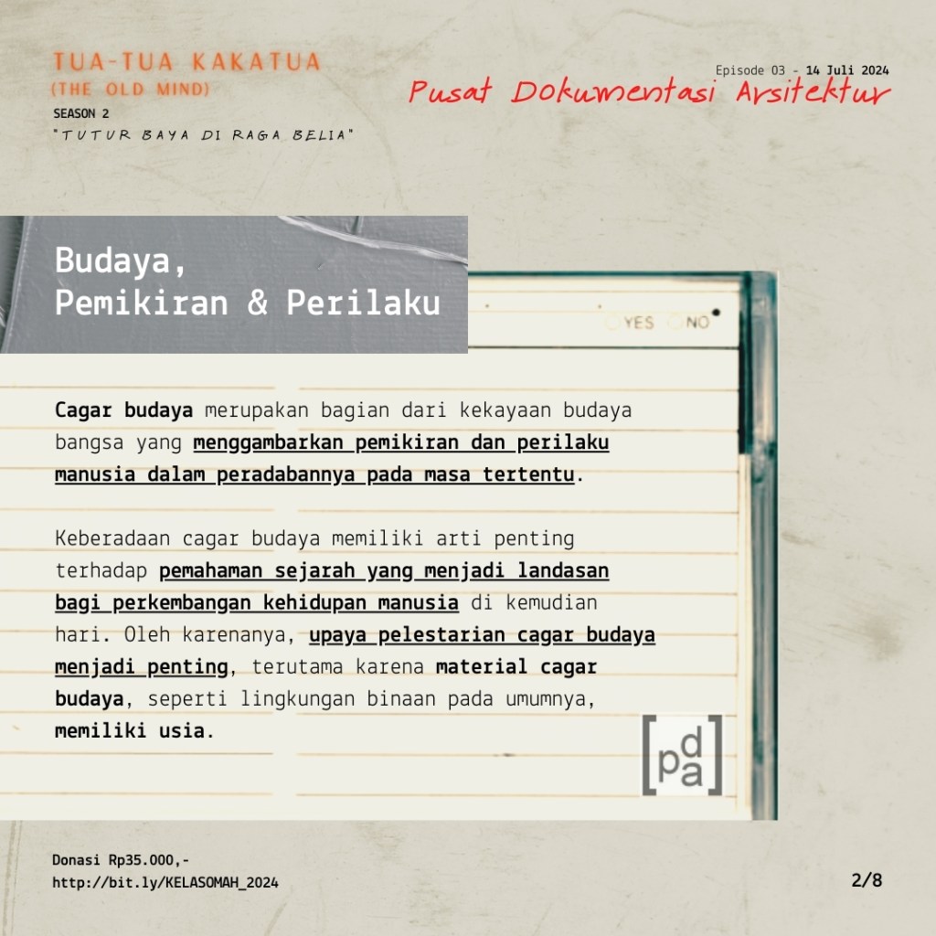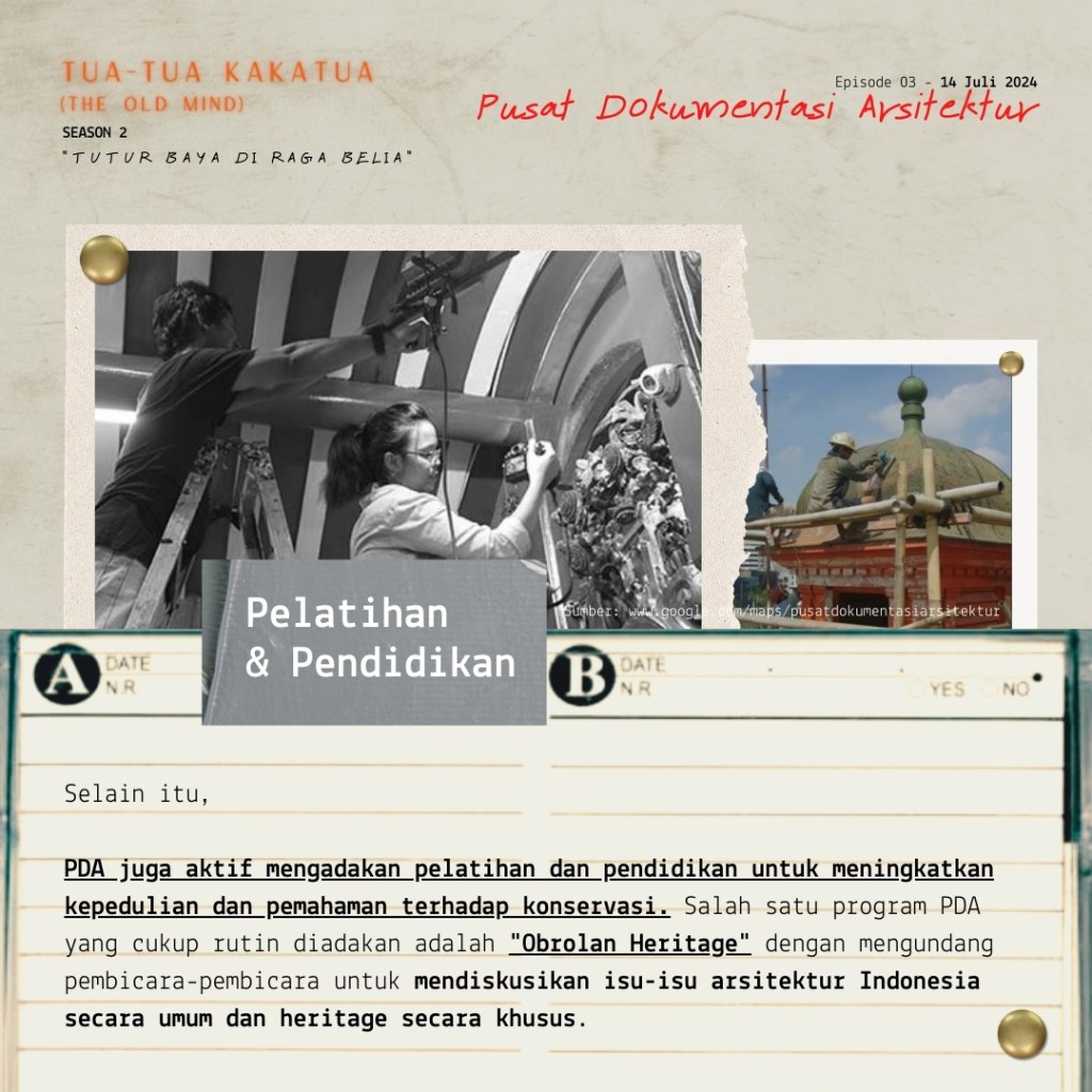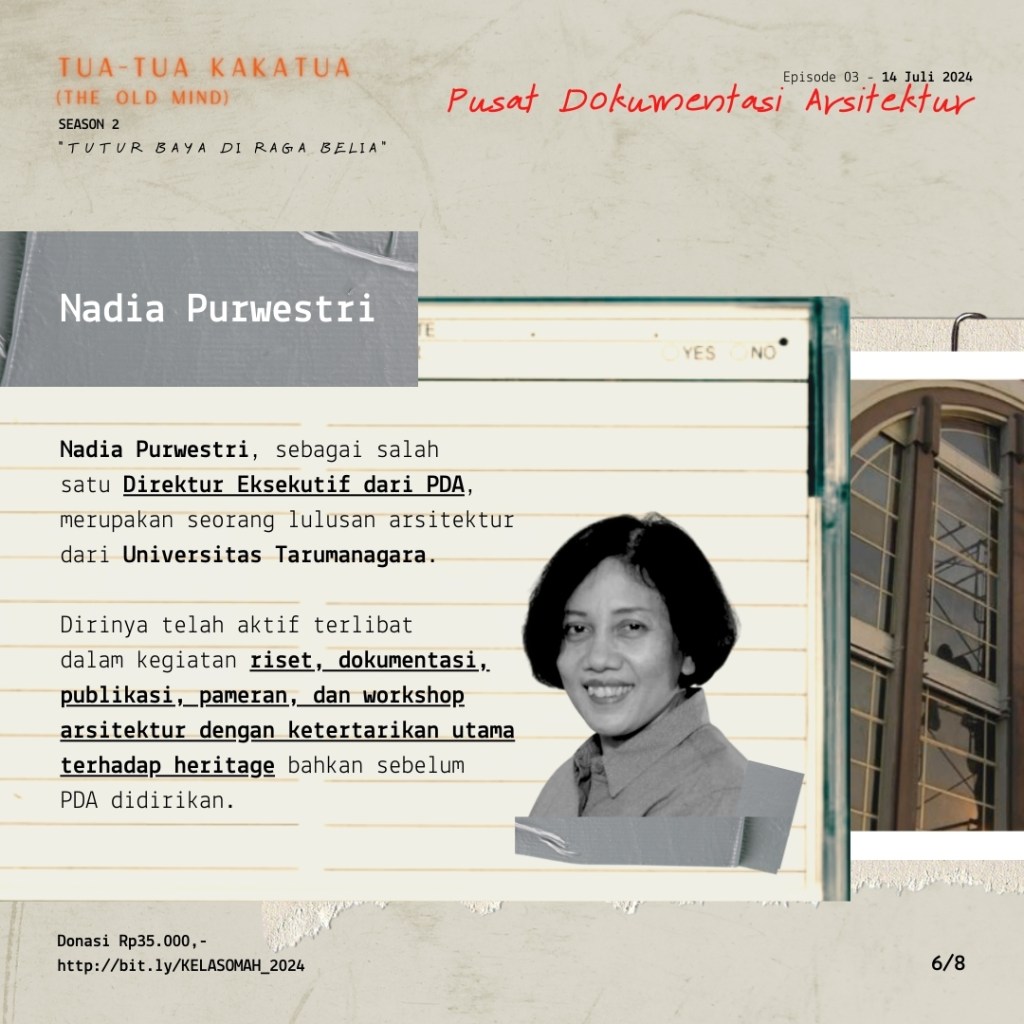Semuanya dapat teman-teman simak dan diskusikan bersama di kelas Tua-Tua Kakatua S2 – Ep. 3 Pusat Dokumentasi Arsitektur (Nadia Purwestri)