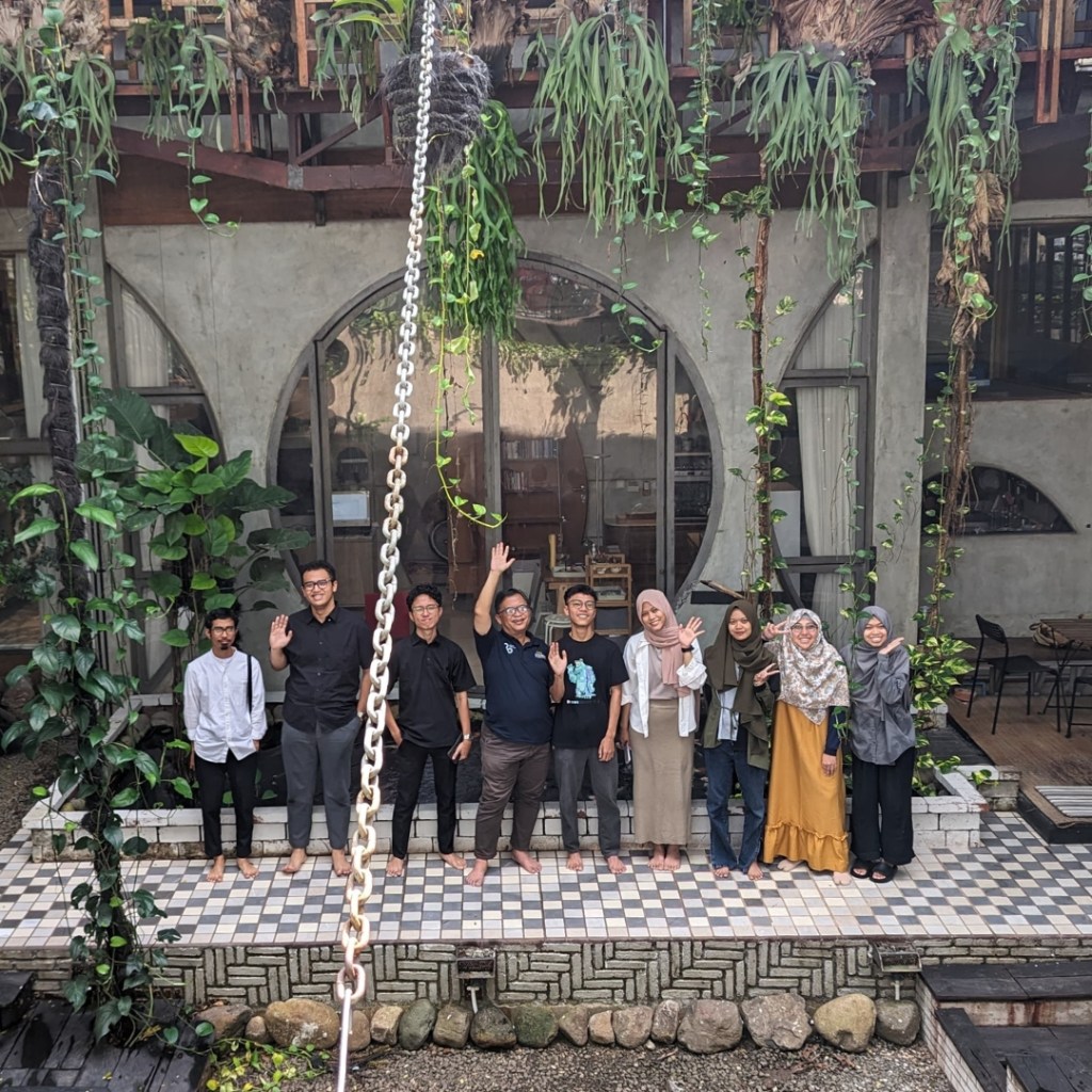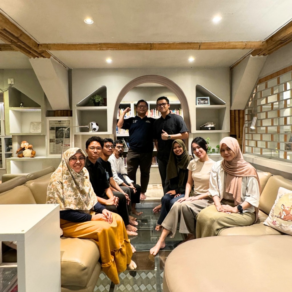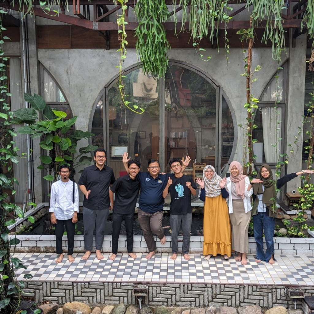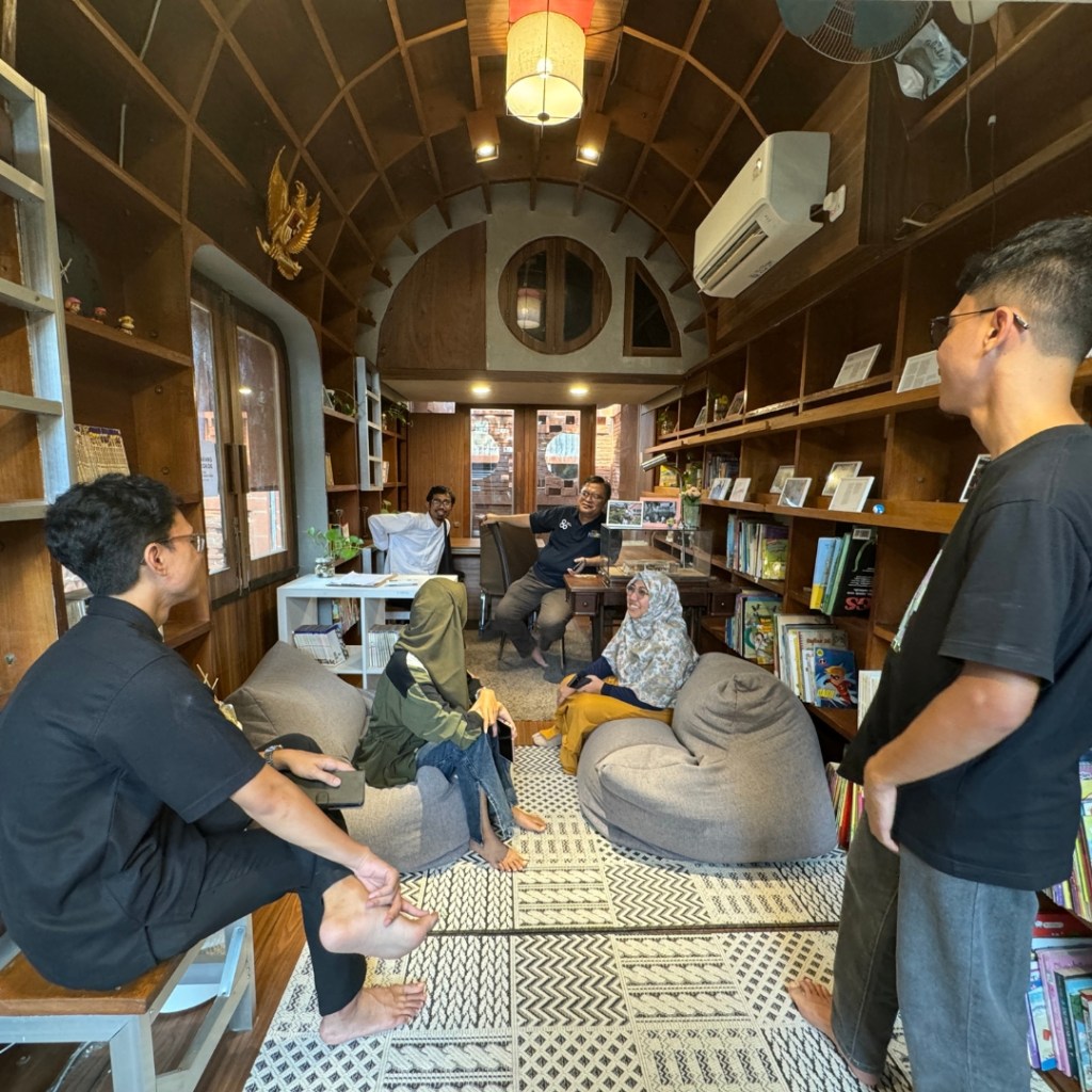 Kedatangan Pak Revi ke Guha tidak hanya membawa kehangatan bagi teman-teman dari UII, tapi juga bagi teman-teman OMAH Library dan teman-teman di studio. Bagi OMAH Library, Pak Revi merupakan sosok kontributor yang sudah berkali-kali mengisi kelas di OMAH, dan sudah menulis buku juga. Menariknya, meskipun sudah sering berdiskusi, baru kali ini kami yang di OMAH bertemu dengan beliau secara langsung. Beliau juga menyapa setiap tim yang ada di studio. Dengan kejenakaannya yang genius, beliau mudah dekat dengan teman-teman di studio.
