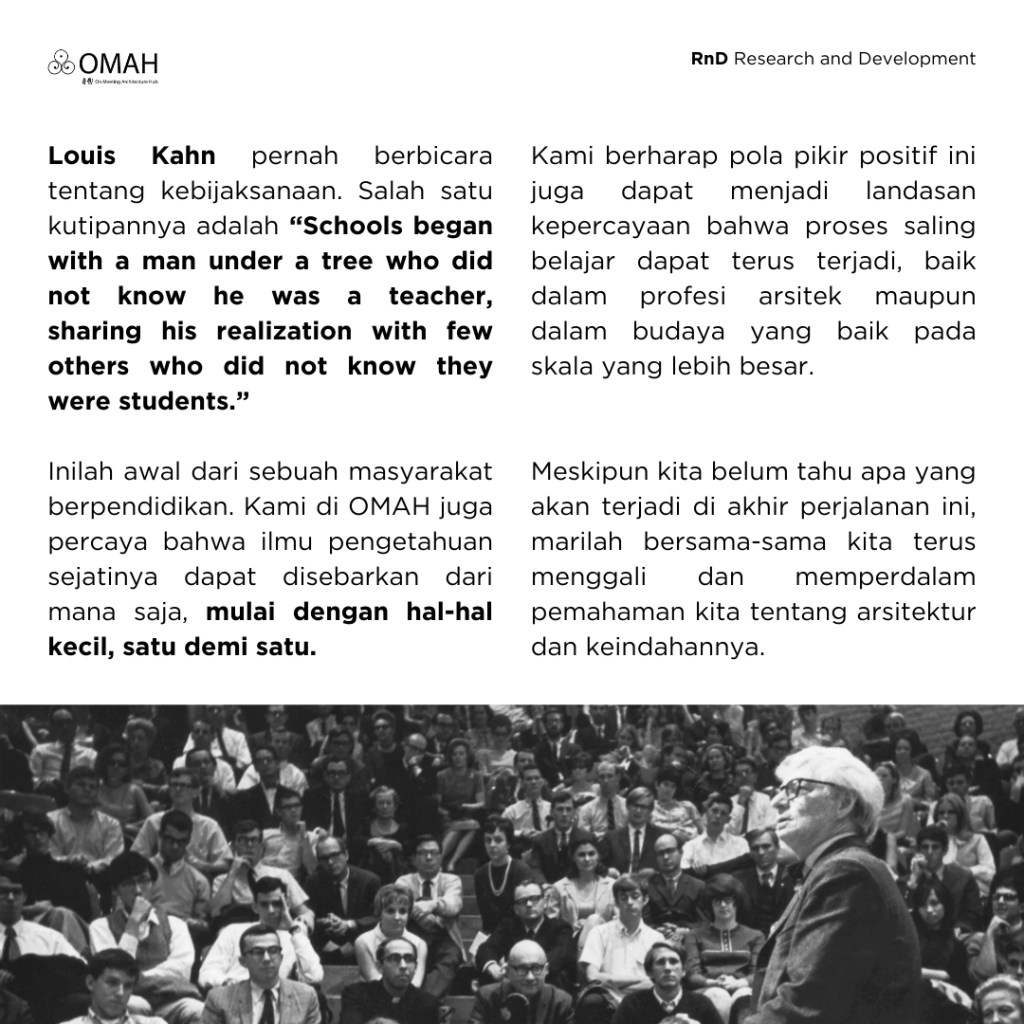 Kami percaya bahwa arsitektur memiliki budaya berbagi, dalam artian berbagi hal-hal yang mendalam dan kompleks serta analisis yang kritis terkait arsitektur dan kehidupan.