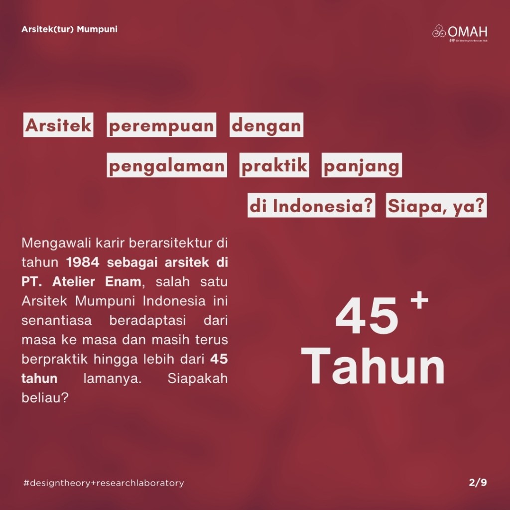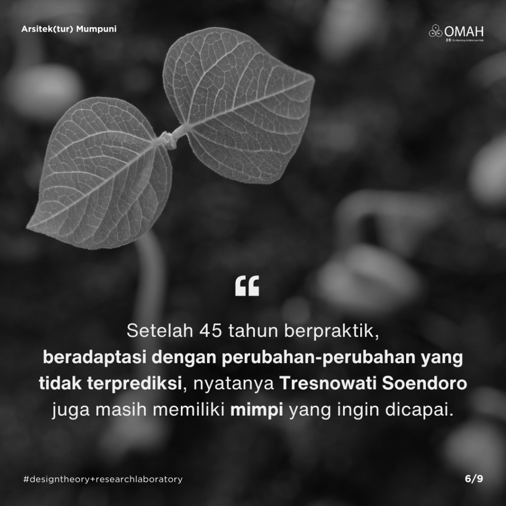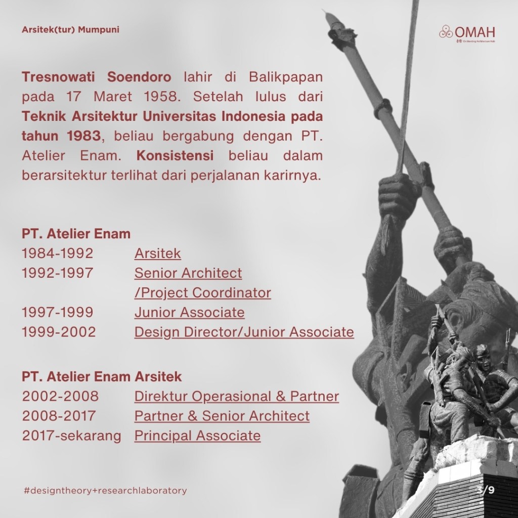 Mari kita simak perjalanan berarsitektur Tresnowati Soendoro dan berdiskusi bersama pada: