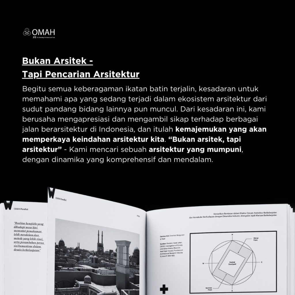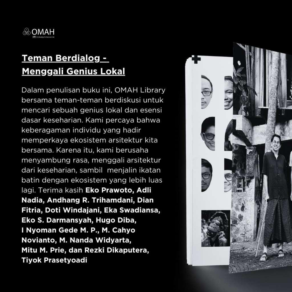Dalam penulisan buku ini, OMAH Library bersama teman-teman berdiskusi untuk mencari sebuah genius lokal dan esensi dasar keseharian. Kami percaya bahwa keberagaman individu yang hadir memperkaya ekosistem arsitektur kita bersama. Karena itu, kami berusaha menyambung rasa, menggali arsitektur dari keseharian, sambil menjalin ikatan batin dengan ekosistem yang lebih luas lagi.