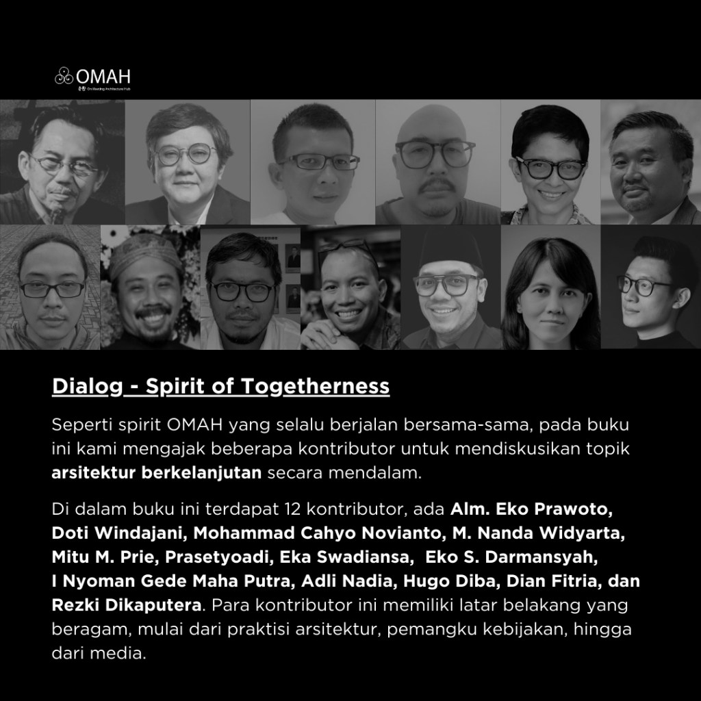 Buku ini ditulis oleh tim OMAH Library serta diperkaya dengan interview bersama 12 kontributor OMAH dari berbagai latar belakang, mulai dari praktisi arsitektur, pemangku kebijakan, hingga media massa, di antaranya terdapat Alm. Eko Prawoto, Doti Windajani, Mohammad Cahyo Novianto, M. Nanda Widyarta, Mitu M. Prie, Prasetyoadi, Eka Swadiansa, Eko S. Darmansyah, I Nyoman Gede Maha Putra, Adli Nadia, Hugo Diba, Dian Fitria, dan Rezki Dikaputera.