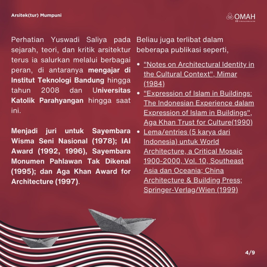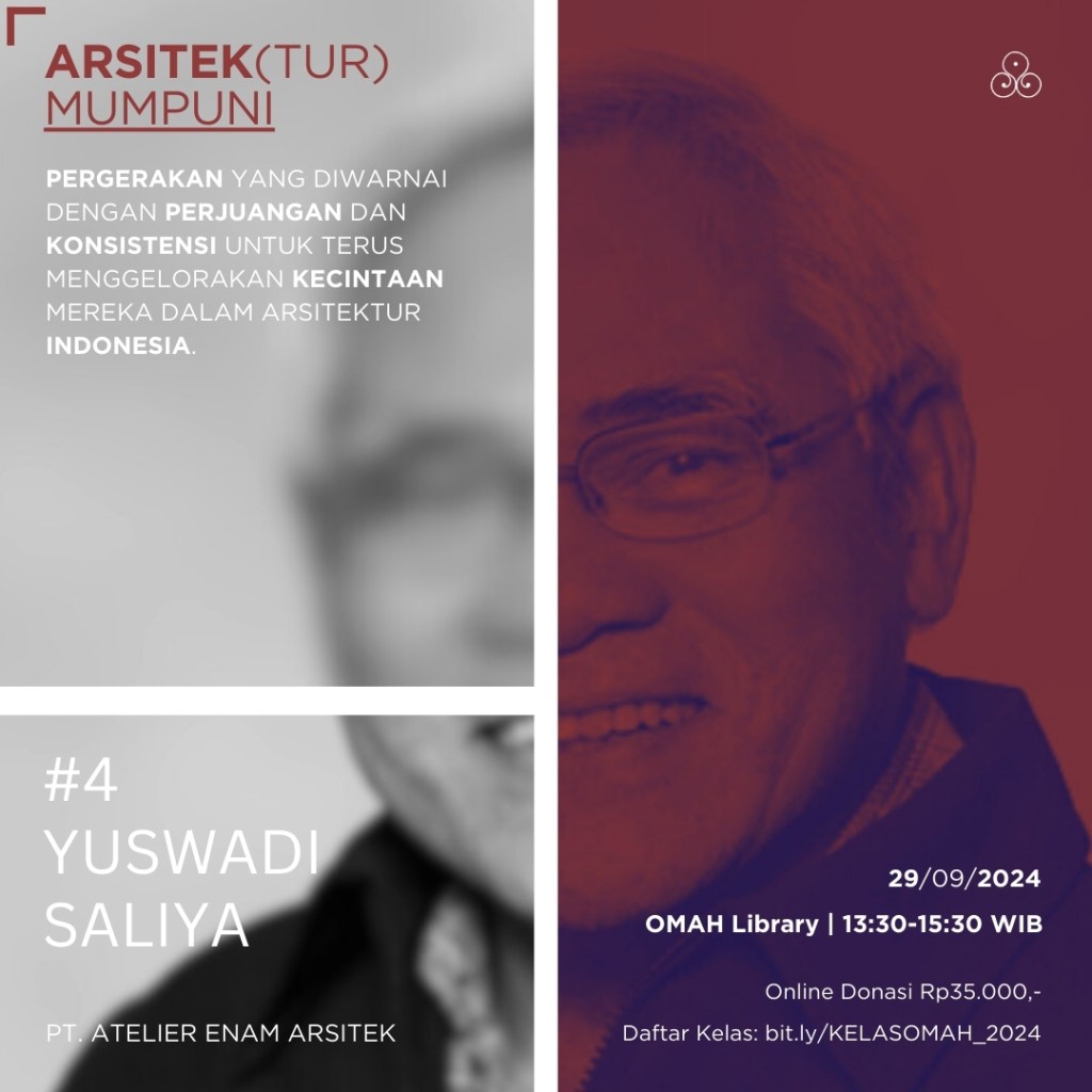 Mari kita simak perjalanan berarsitektur Yuswadi Saliya dan berdiskusi bersama pada: