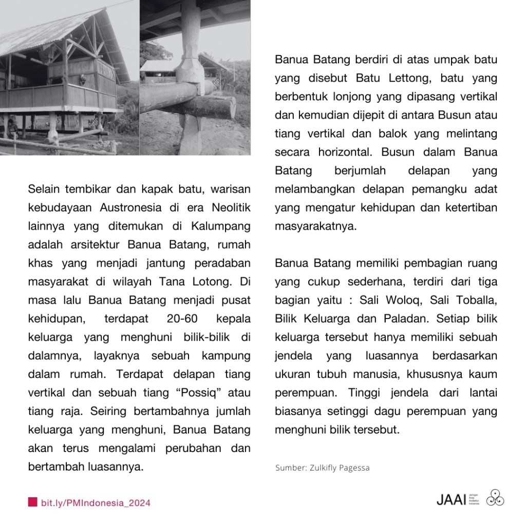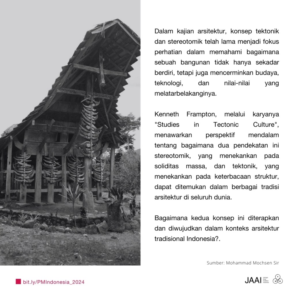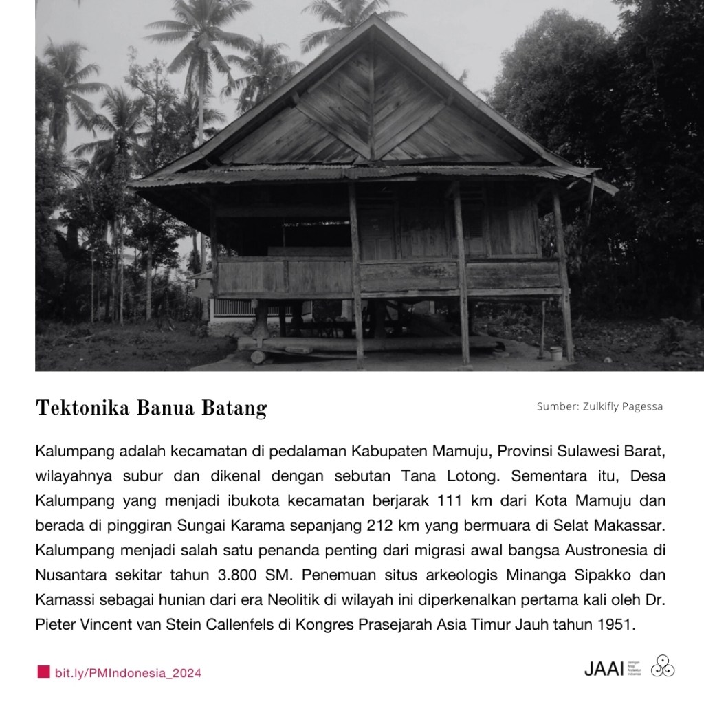 Halo teman-teman semua, pada tahun 2024 ini OMAH dan JAAI (Jaringan Arsip Arsitektur Indonesia) kembali hadir dengan memulai serial PMI #26, yang akan membahas tentang Tektonika Banua Batang dari Mamuju, Sulawesi Barat dan Tektonika Arsitektur Toraja dari Sulawesi Selatan.