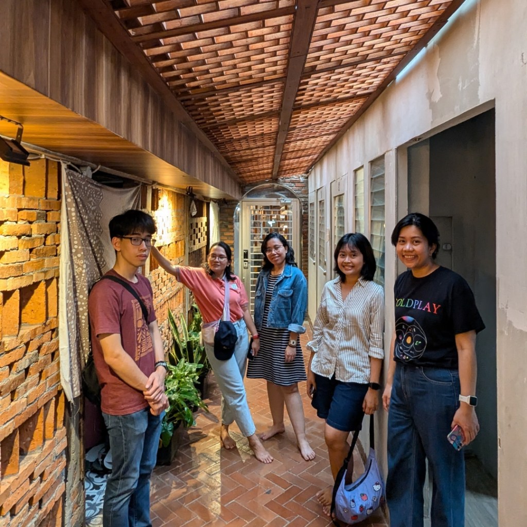 Selangkah demi selangkah perjalanan bersama mereka begitu hangat, mereka sangat mudah dekat satu sama lain, begitupun dengan kami. Yang menyetuh hati kami adalah ketika beberapa orang datang terlambat, kemudian 2 orang dari mereka menjelaskan secara detail hal-hal yang mereka lewatkan, dengan antusias mereka menjelaskan awal mula Boboto berdiri, bagaimana detail-detail arsitektur yang berawal dari bedeng membentuk arsitektur yang membata-bata, bahkan mereka mengingat nama-nama keluarga yang menjaga rumah dan Library ini.