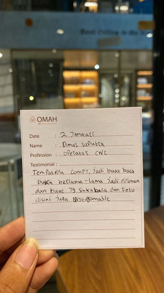 Tempatnya comfy, jadi buat baca buku berlama-lama jadi nyaman dan buat yang suka baca dan foto disini juga instagramable