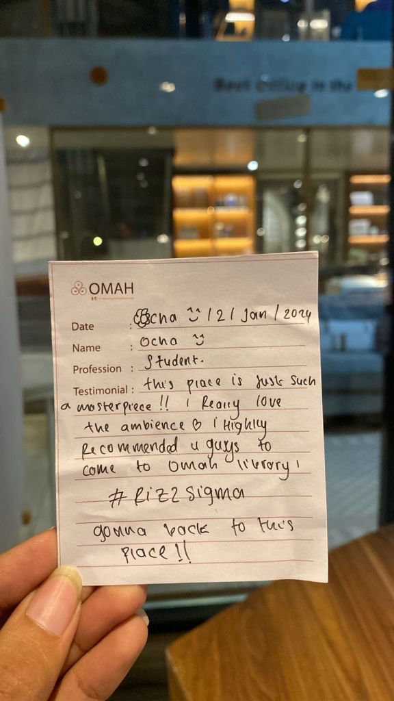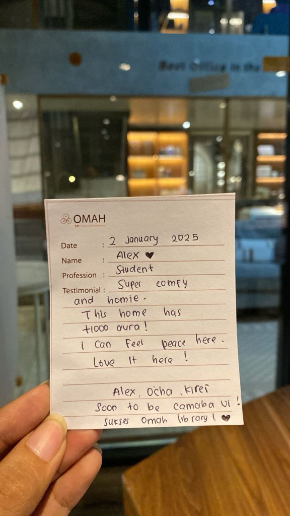 I really love the ambience, i highlly recommended you guys to come to Omah Library