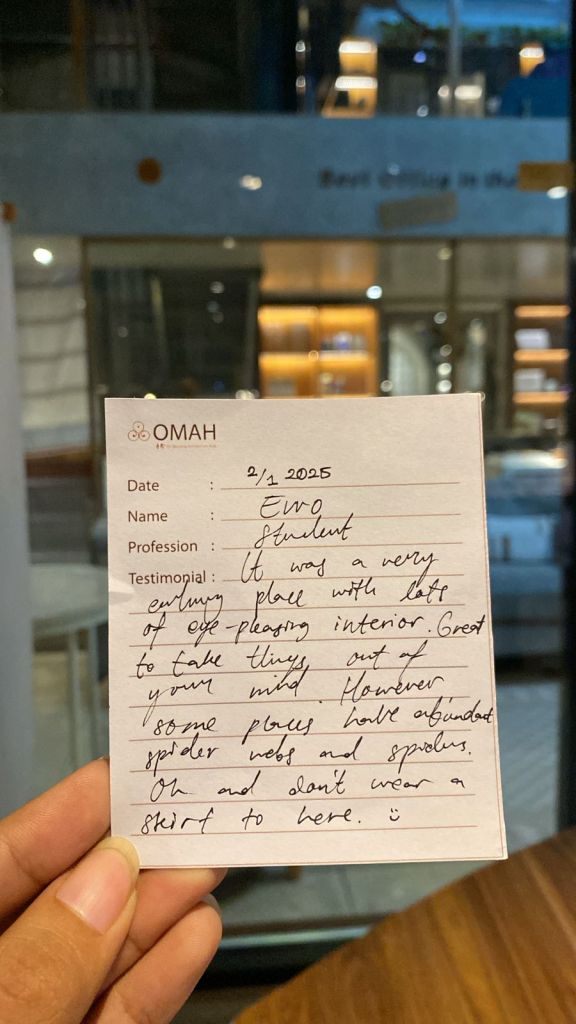 It was a very earling place with lots of eye-pleasing interior. Great to take things out of your mind. However some places have afundant spider webs and spelus. Oh and don’t wear a skirt to here 🙂