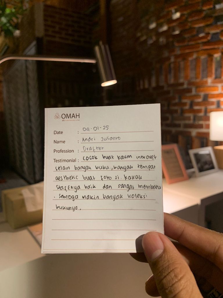 Cocok buat kaum introvet selain banyak buku, banyak tempat aesthetic buat foto si kaka staffnya baik dan sangat membantu, semoga makin banyak koleksi bukunya