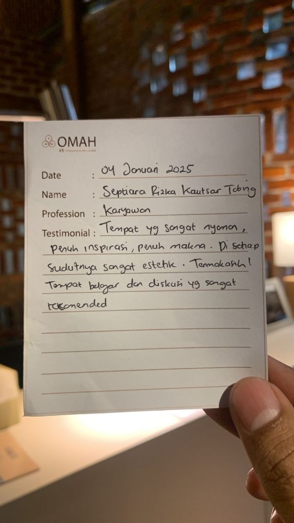 Tempat yang sangat nyaman, penuh inspirasi, penuh makna. Di setiap sudutnya sangat estetik. Terimakasih!