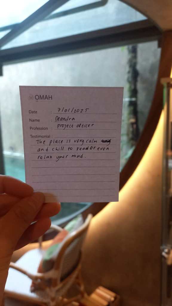 The place is very calm and chill to read or even relax your mind.