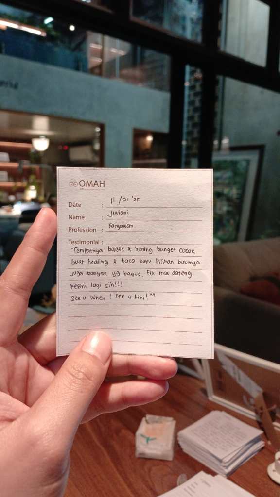 Tempatnya bagus & hening banget cocok buat healing & baca buku pilihan bukunya juga banyak yang bagus. Fix mau dateng kesini lagi sih !!!