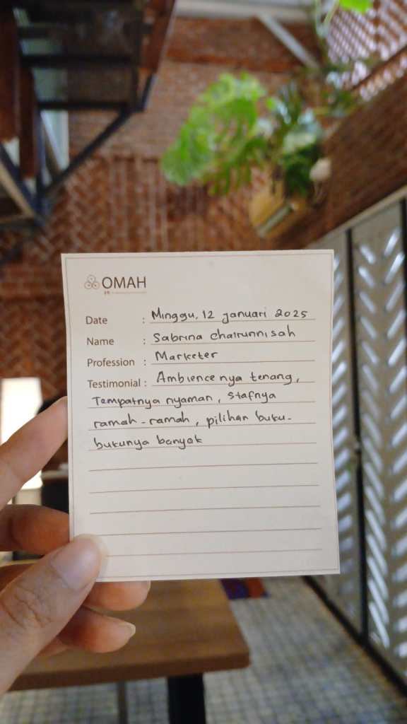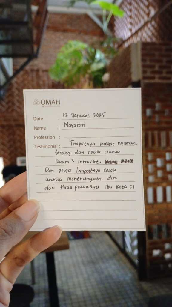 Tempatnya sangat nyaman, tenang dan cocok untuk kaum-kaum introvert. Dan juga tempatnya cocok untuk menenangkan diri dari hiruk pikuknya ibu kota 🙂