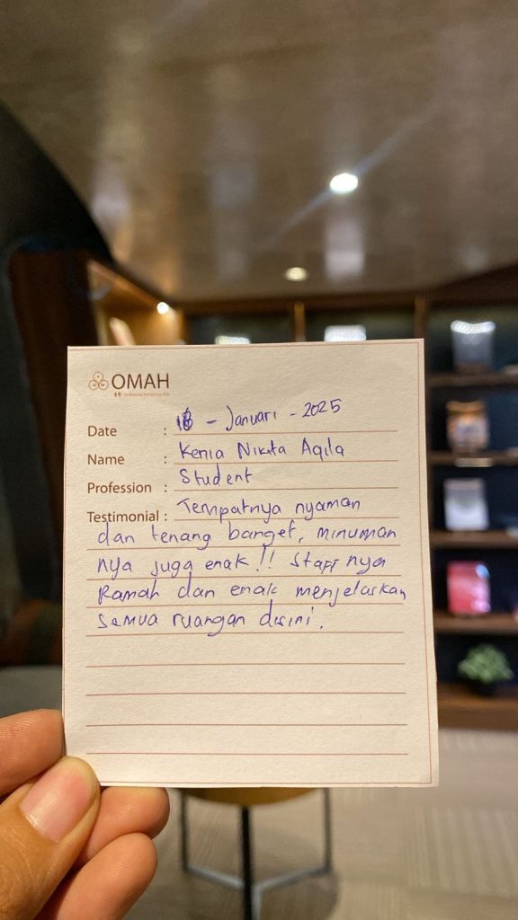 Tempatnya nyaman dan tenang banget, minuman nya juga enak !! staff nya ramah dan enak menjelaskan, semua ruangan disini.