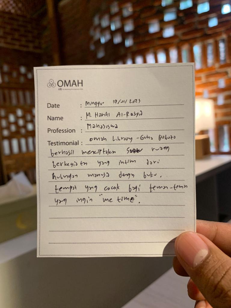 Omah Library – Guha Boboto berhasil menciptakan suatu ruang berkegiatan yang intim dari hubungan manusia dengan buku, tempat yang cocok bagi teman – teman yang ingin “me time”