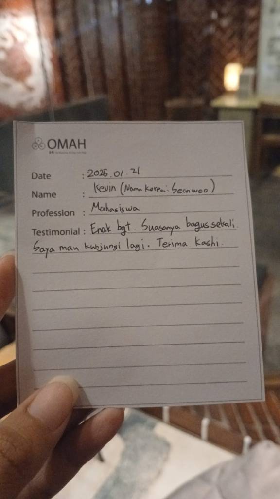 Enak banget. Suasananya bagus sekali. Saya mau kunjungi lagi. Terima kasih
