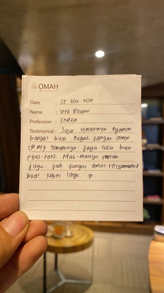 Jujur tempatnya nyaman banget buat nugas, sangat amat comfy tempatnya juga lucu buat foto-foto.