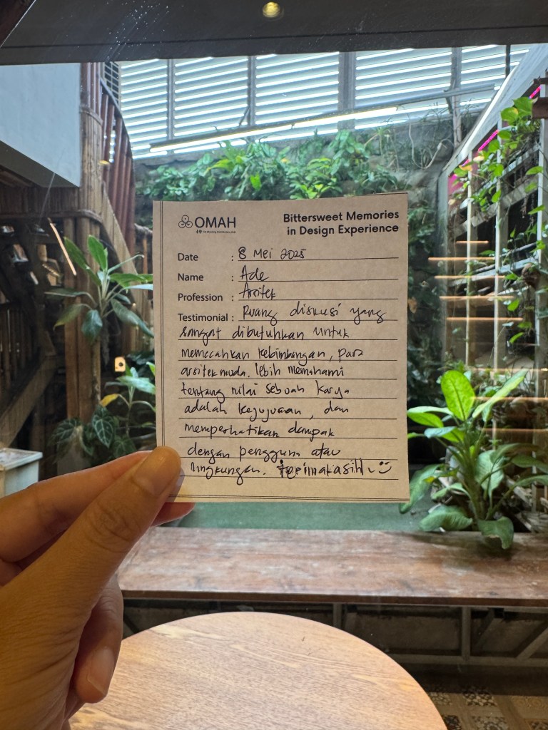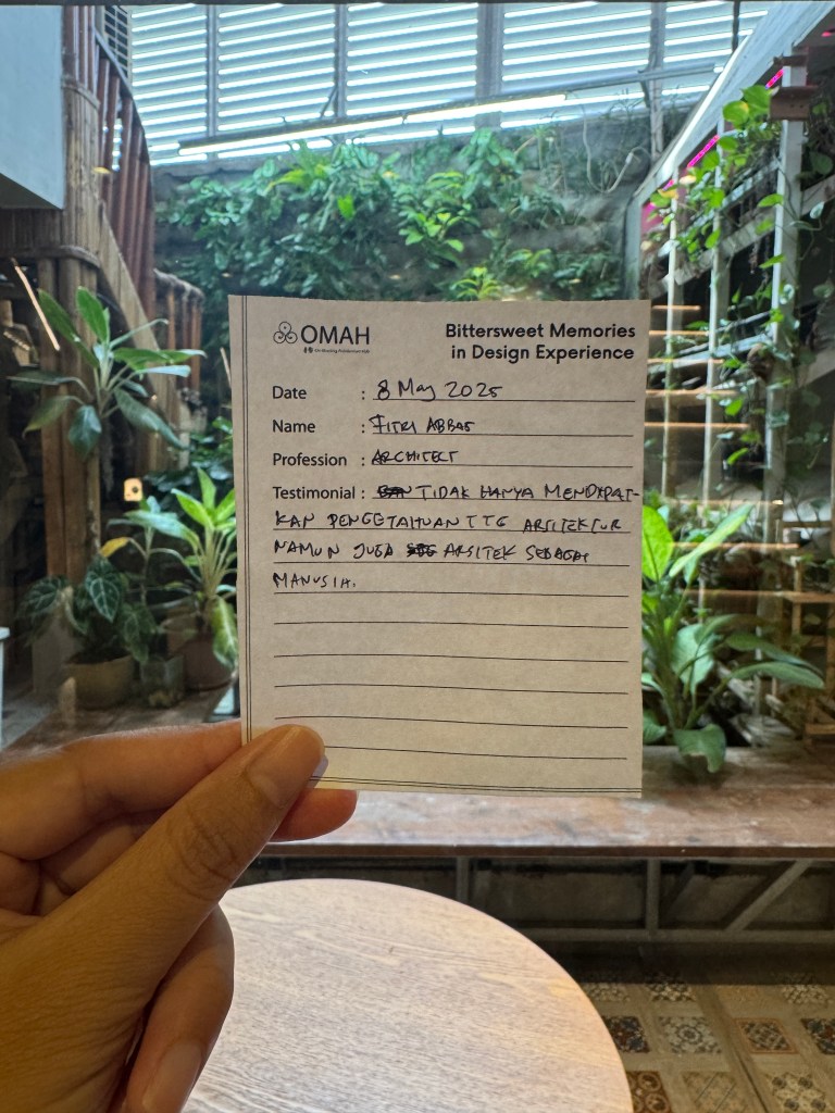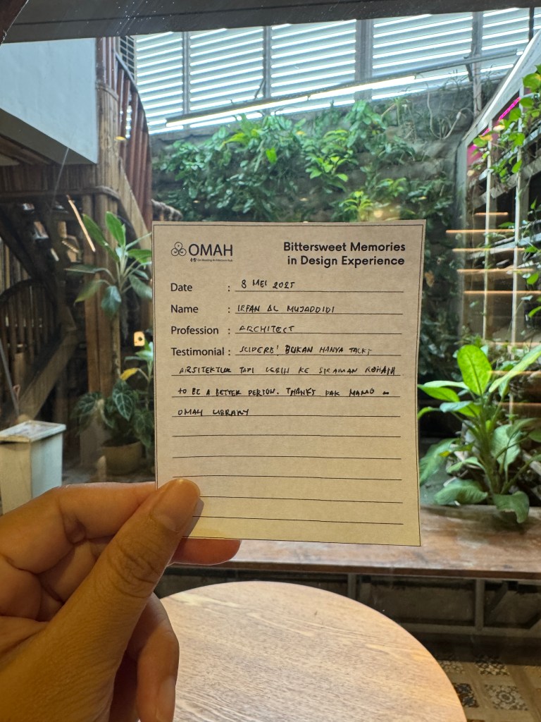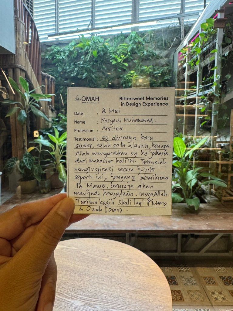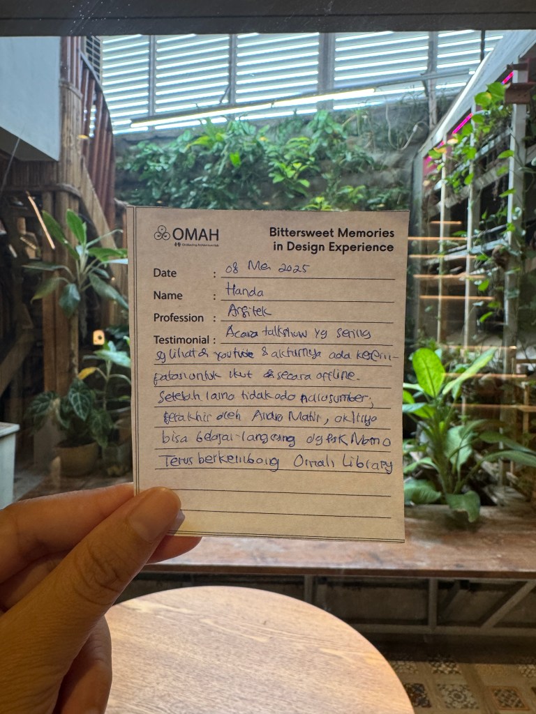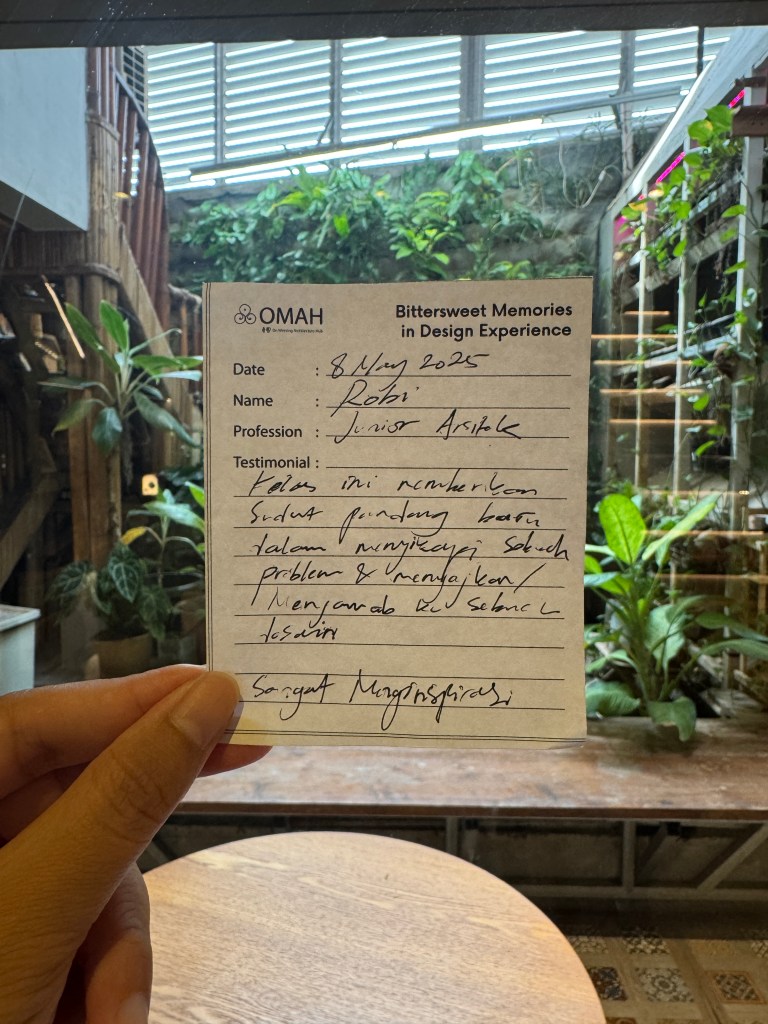 Bittersweet Memories in Design Experience adalah salah satu seri kelas OMAH Library yang tidak hanya membahas karya, tetapi juga menggali kisah di baliknya: masa kecil, pendidikan, hingga perjalanan penuh liku menuju profesi arsitek. Bitter and Sweet, perjalanan arsitektur tidak selalu glamor seperti yang ditampilkan media. Justru naik-turunnya yang membuatnya bermakna.