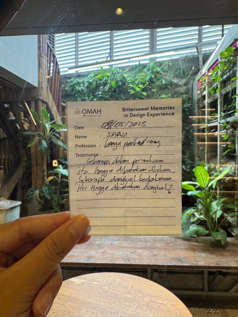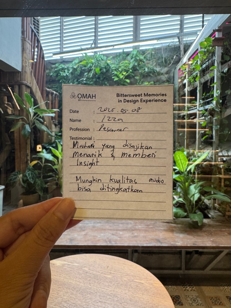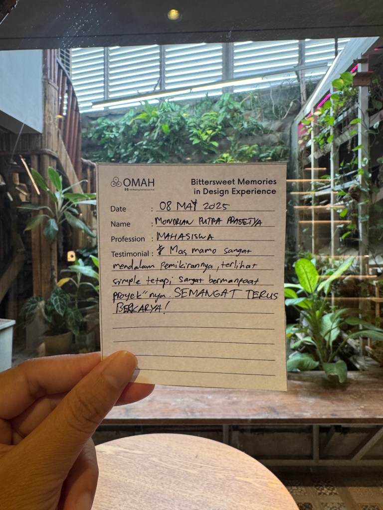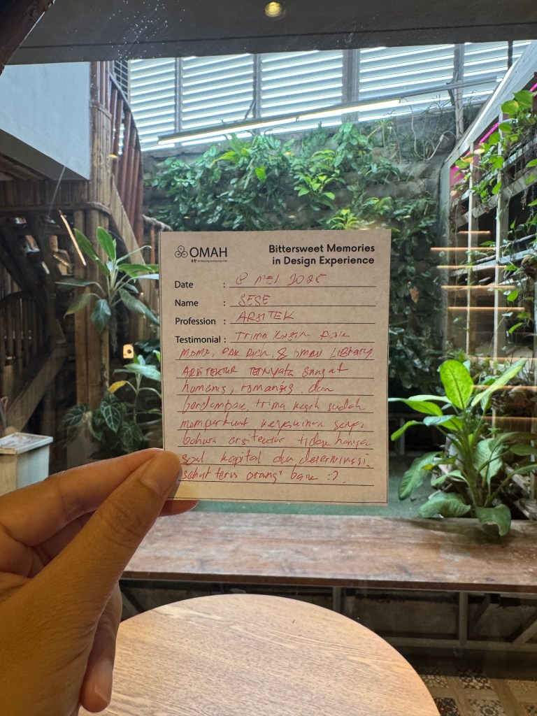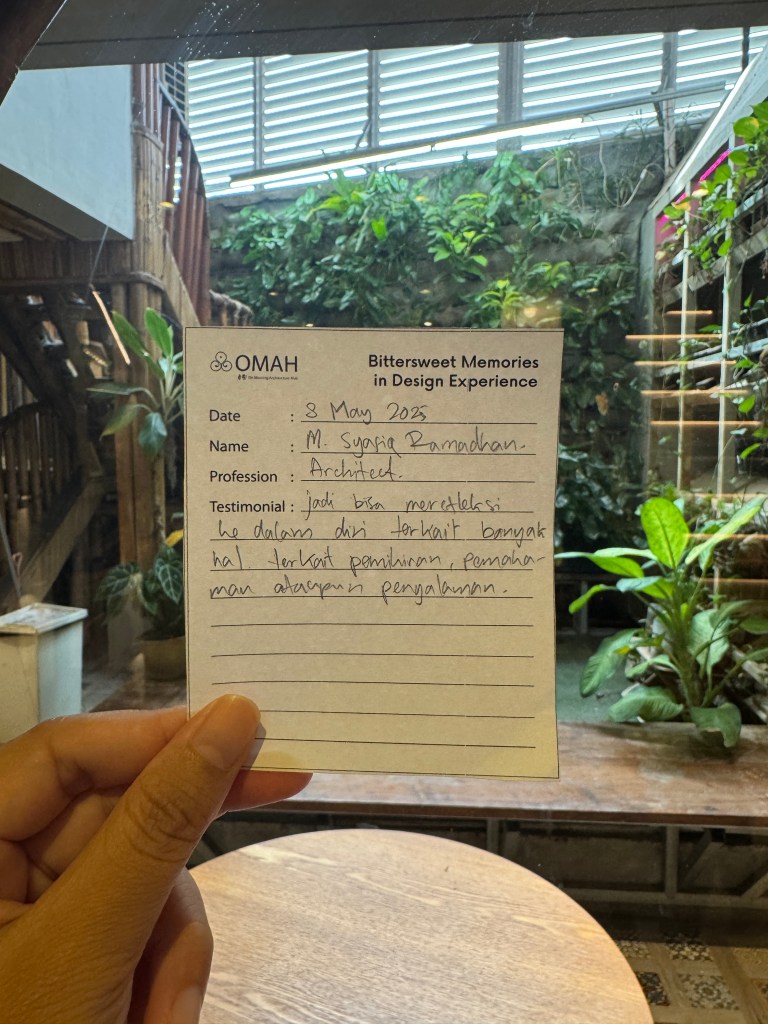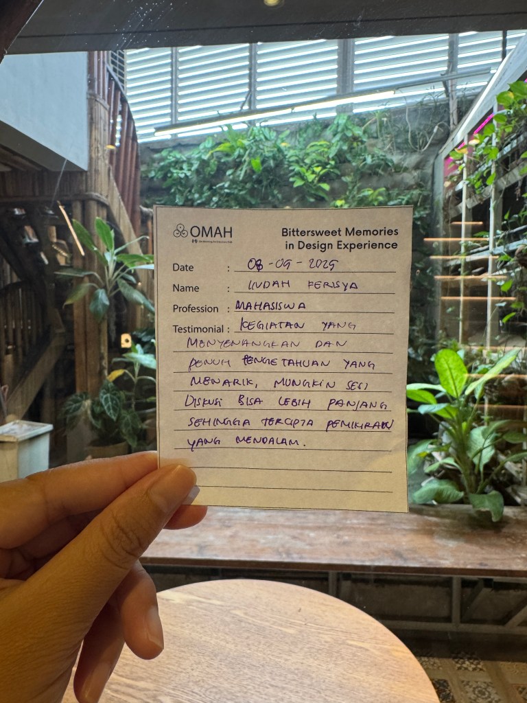 Bittersweet Memories in Design Experience adalah salah satu seri kelas OMAH Library yang tidak hanya membahas karya, tetapi juga menggali kisah di baliknya: masa kecil, pendidikan, hingga perjalanan penuh liku menuju profesi arsitek. Bitter and Sweet, perjalanan arsitektur tidak selalu glamor seperti yang ditampilkan media. Justru naik-turunnya yang membuatnya bermakna.