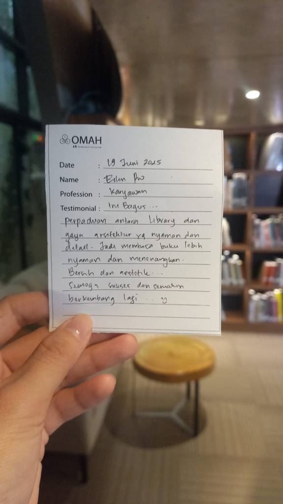 Perpaduan antara Library dan gaya arsitektur yang nyaman dan detail. jadi membaca buku lebih nyaman dan menenangkan. bersih dan aestetic… semoga sukses dan semakin berkembang lagi.. 😊