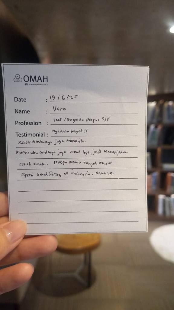 Nyaman Banget!! koleksi bukunya juga menarik karena aku ardenya juga visual banget, jadi termanjakan sekali mataku. semoga semakin banyak tempat seperti OMAH Library di Indonesia, Amin