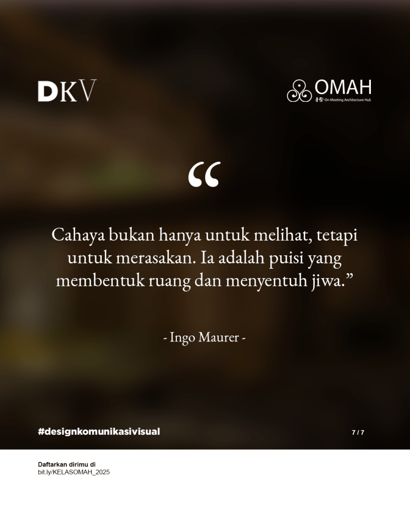 “Cahaya bukan hanya untuk melihat, tetapi untuk merasakan. Ia adalah puisi yang membentuk ruang dan menyentuh jiwa.”
