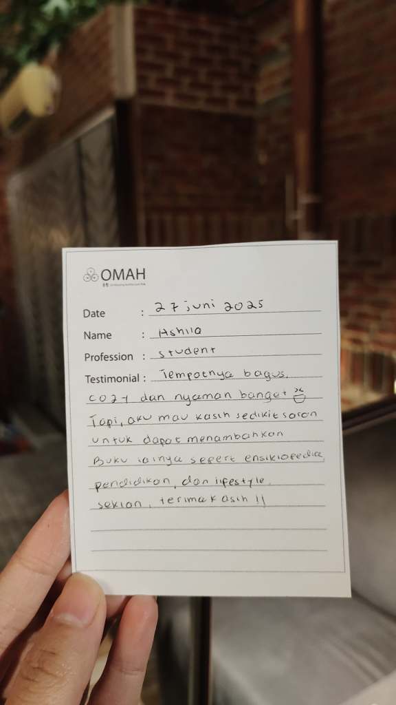 Tempatnya bagus, Cozy dan nyaman banget š tapi, aku mau kasih sedikit saran untuk dapat menambahkan buku lainnya seperti ensiklopedia, pendidikan dan Lifestyle. sekian terimakasih!!