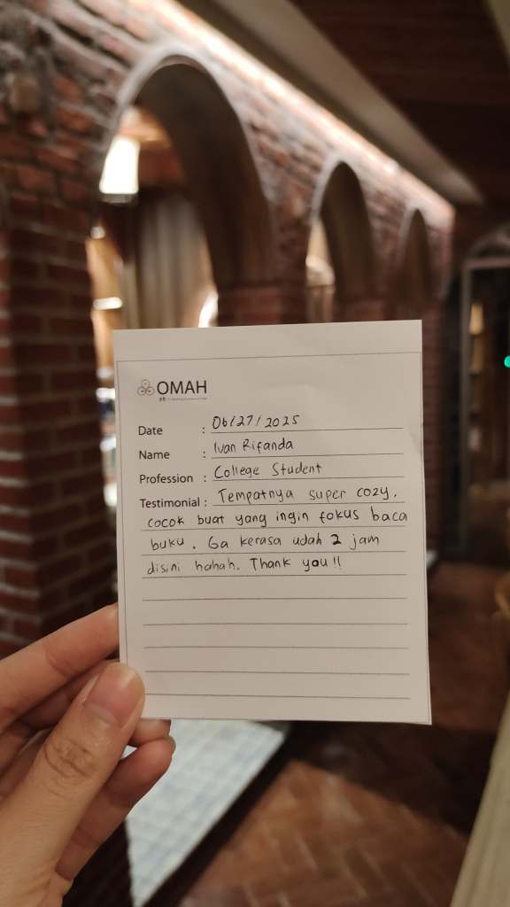 Tempatnya super cozy, cocok buat yang ingin fokus baca buku. ga besara udah 2 jam diisini hahah Thank You !!