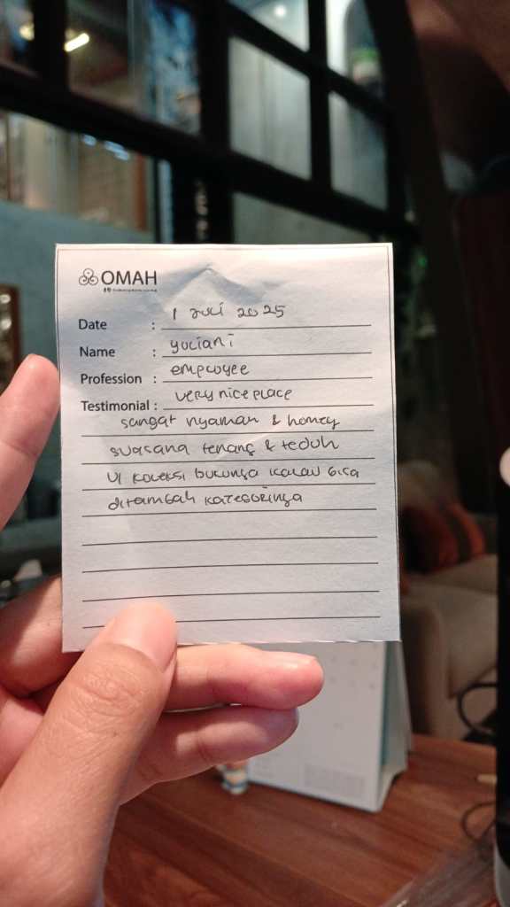Very nice place, sangat nyaman & Homey, suasana tenang & teduh untuk koleksi bukunya kalau bisa ditambah kategorinya