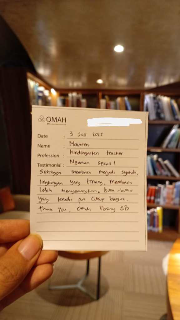 sehingga membaca menjadi syahdu, lingkungan yang tenang, membaca lebih menyenangkan, buku-buku yang tersedia pun cukup banyak Thank You Omah Library 😊