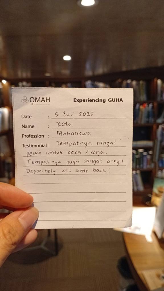 OMAH Library suka dengan konsep lantai 2 full kaca, bangunannya banyak ruang jadi terlihat banyak space untuk membaca