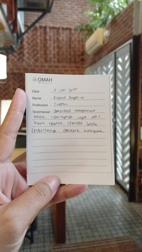 Ambience tempatnya bagus, Lightingnya juga pas buat readers, semoga book selectionnya semakin banyak